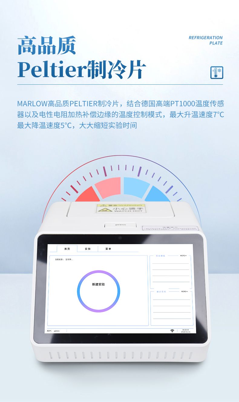 3.Marlow高品质Peltier制冷片,结合德国高端PT1000温度传感器以及电性电阻加热补偿边缘的温度控制模式,*大升温速度7℃,*大降温速度5℃,大大缩短实验时间。
