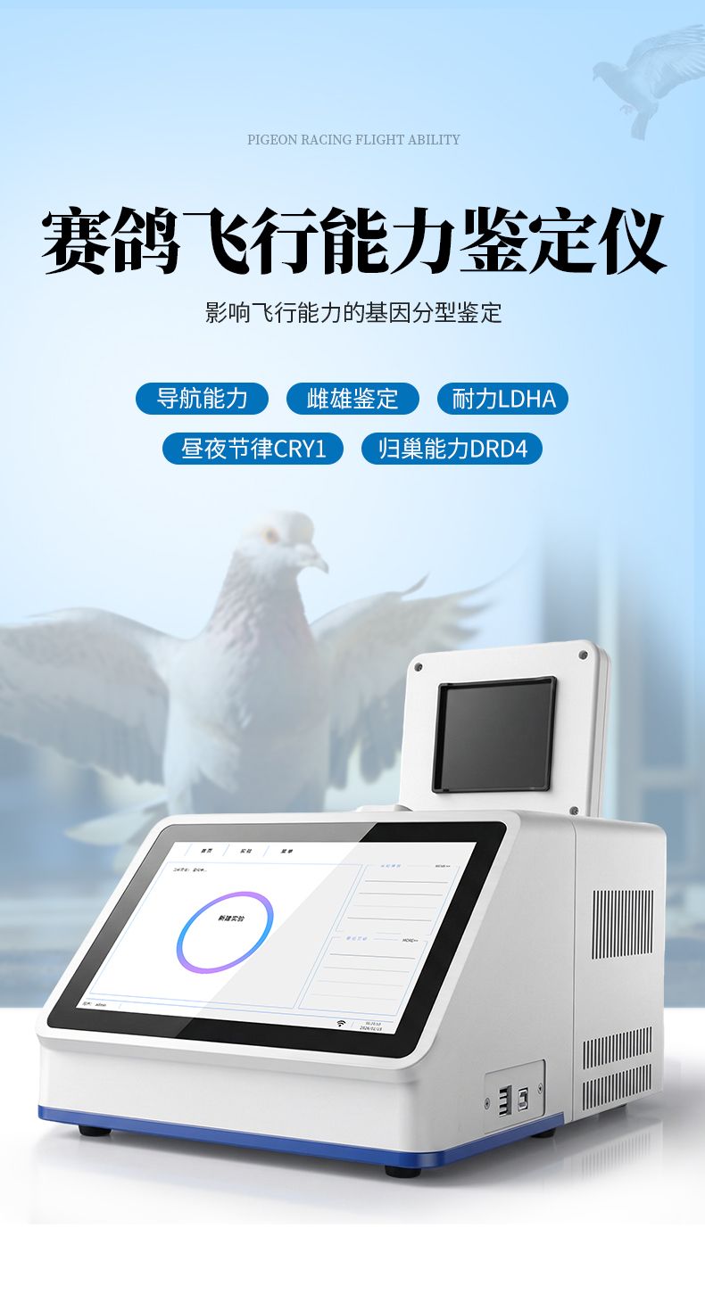 我司结合上述基因研究推出的鸽子飞行能力鉴定仪可同时鉴定包含鸽子雌雄性别鉴定及归巢能力DRD4、耐力LDHA、导航能力和昼夜节律CRY1等影响飞行能力的基因分型鉴定。