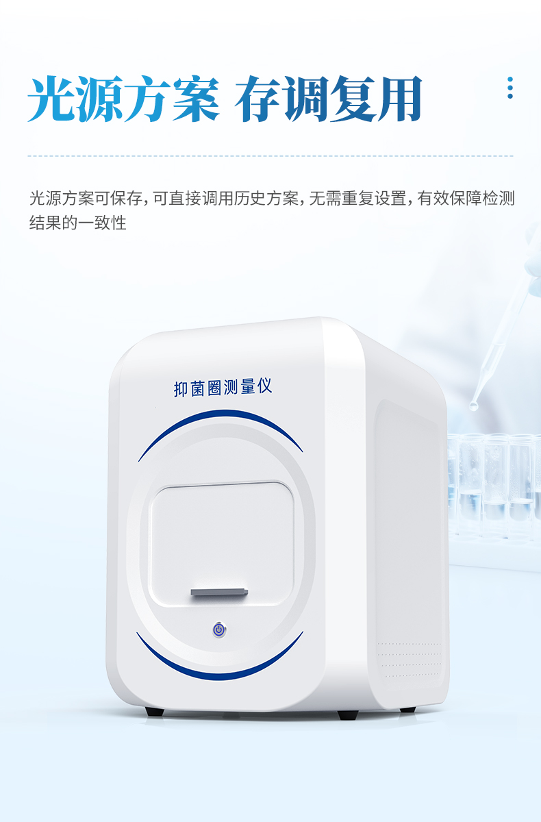 本产品为集图像采集、数据处理与统计分析于一体的抑菌圈测量仪,广泛应用于食品、药品、化妆品、环境监测、医疗卫生、科研院校等领域。该仪器采用先进数字图像处理技术,能快速、精准、全自动地测量培养皿中抑菌圈的直径,并同步自动完成效价计算,大幅提升实验操作效率,有效降低人工测量误差。