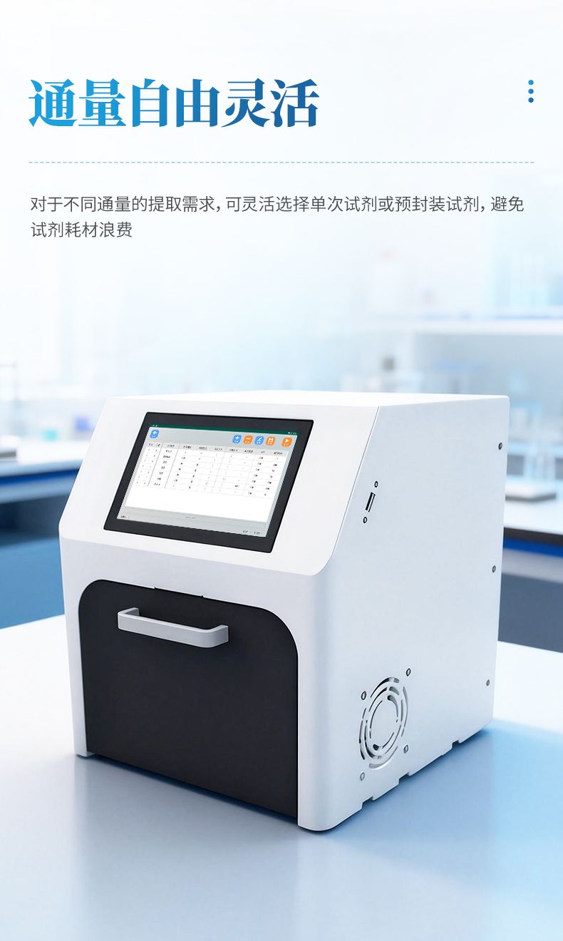 程序管理:可使用二维条码更新提取程序,零成本;仪器可存储多套程序,兼容多种样本类型